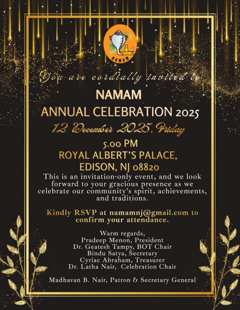 The NAMAM Annual Celebration 2025 was held on 12 December 2025 (Friday) at 5:00 PM at Royal Albert’s Palace, Edison, …